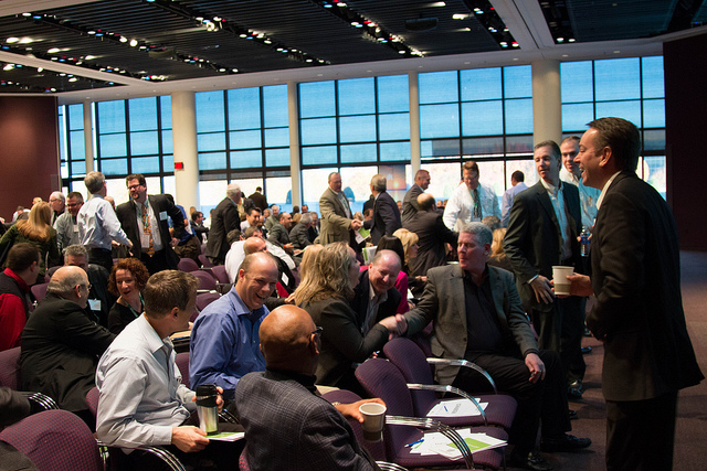 I believe in music. I feel like the minute someone enters the registration area, they should be greeted with a DJ and a beat. People match their conversations to the energy of the room. Throw up intriguing booths and exhibits and now I’ve gotten two of your senses going. We always begin with a morning session with very high-powered music, as it helps boost conversations.